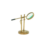 Set de accesorios con base de piedra y aplicaciones en aluminio dorado.