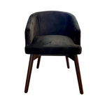 La silla Cuba cuenta con una silueta atrevida y orgánica. Cuenta con una respaldo y asiento tapizado en finamente en tela gris oscuro, sus finas bases están hechas de metal en color negro.