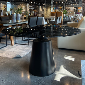 Mesa de cubierta de mármol de 19 mm con base de acero en color negro con diseño original.