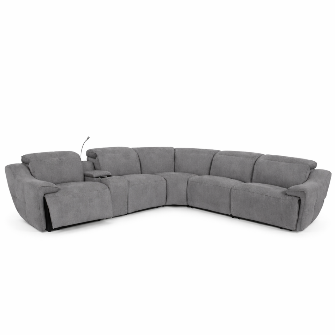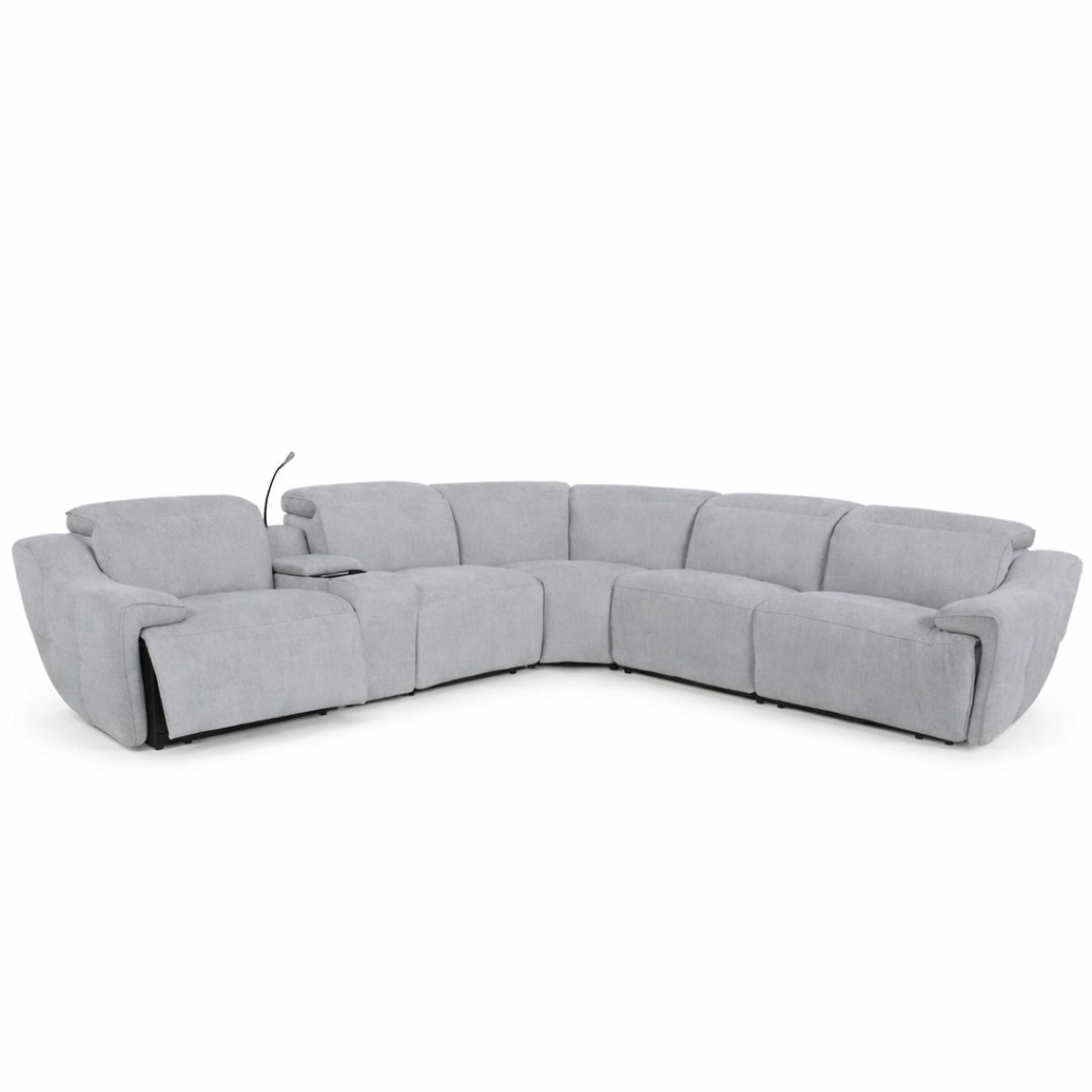 Con un diseño curvo y sistema eléctrico reclinable, este esquinero ofrece confort personalizado y una experiencia superior en espacios contemporáneos.